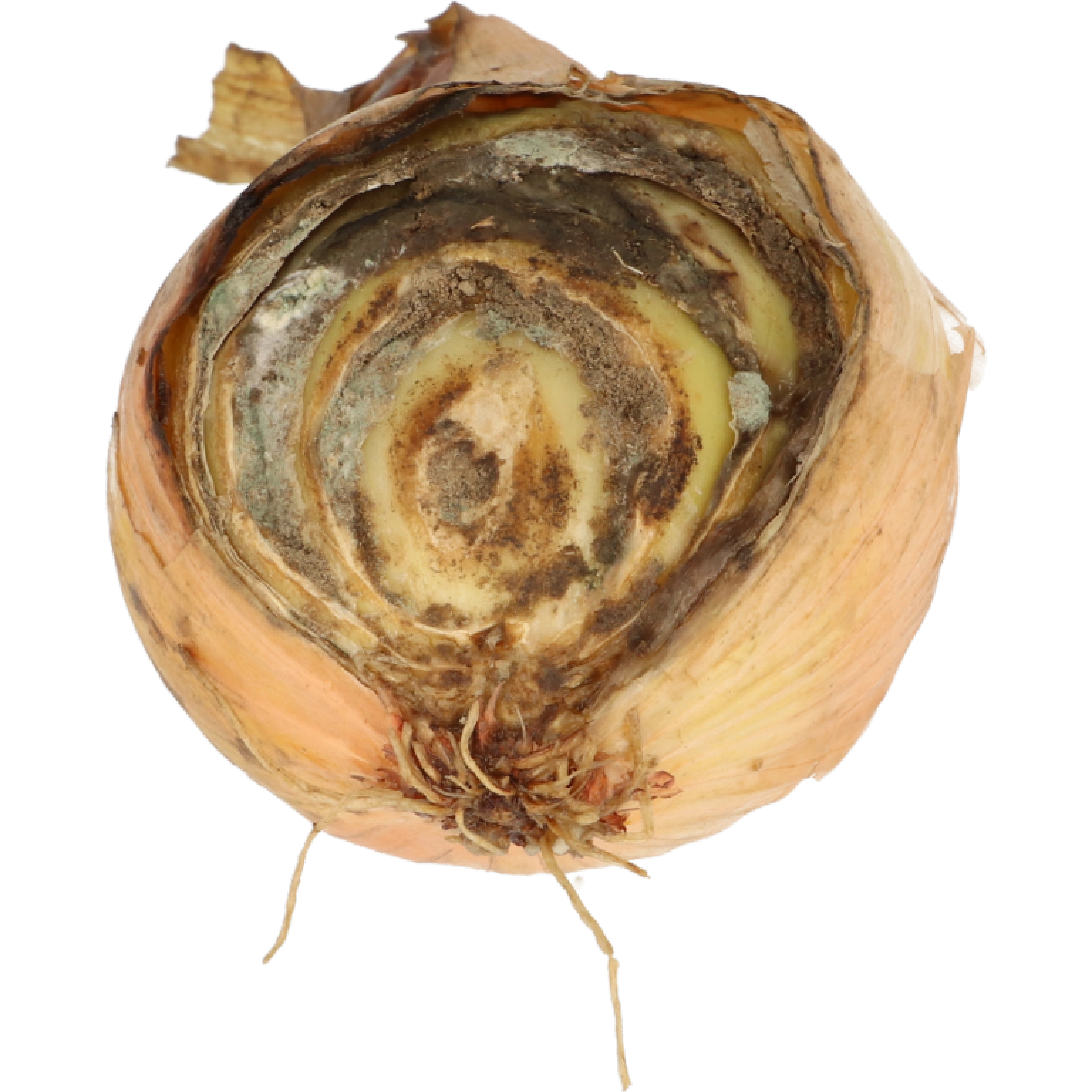 Koprot in de uien is niet toegestaan. Tast ook het vruchtvlees aan